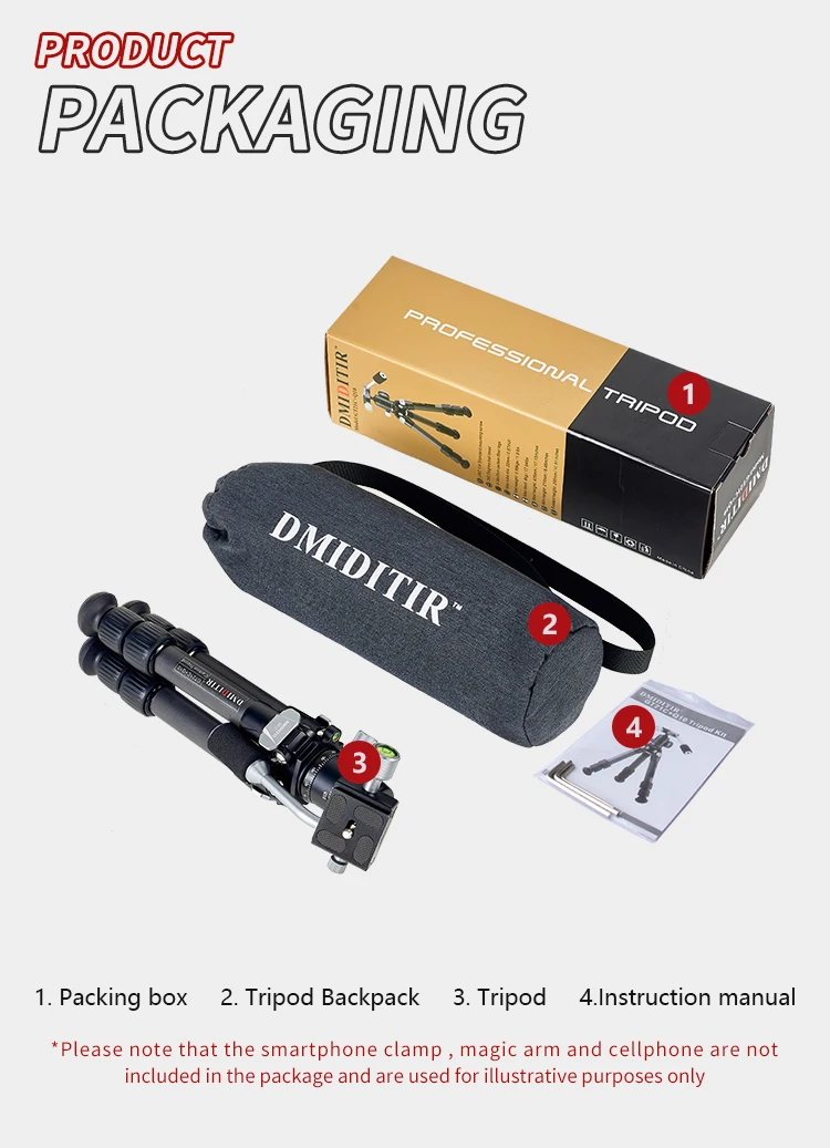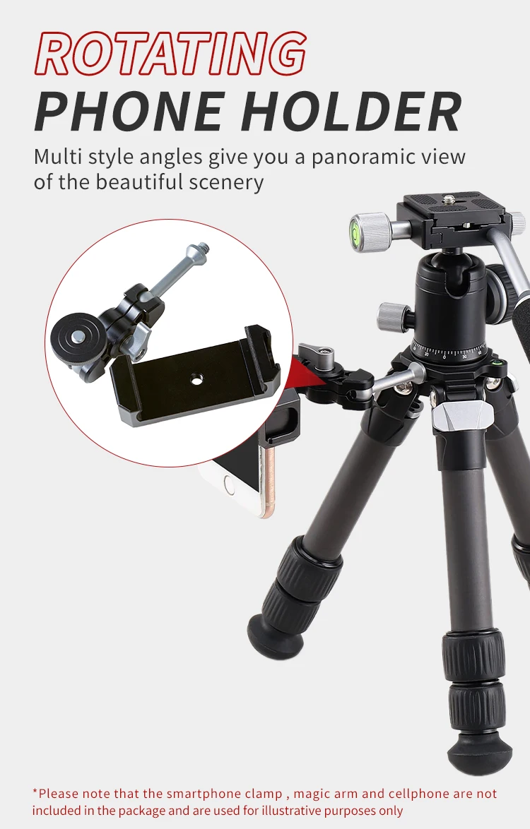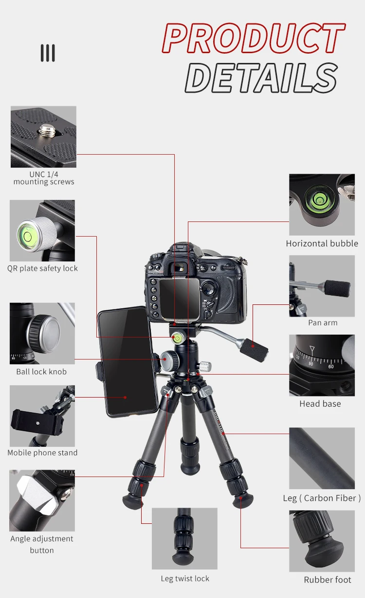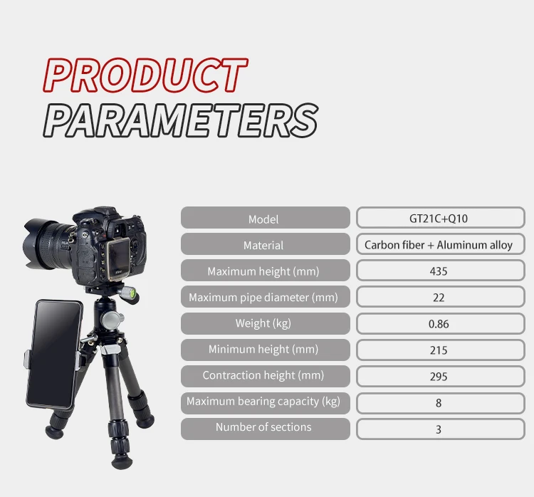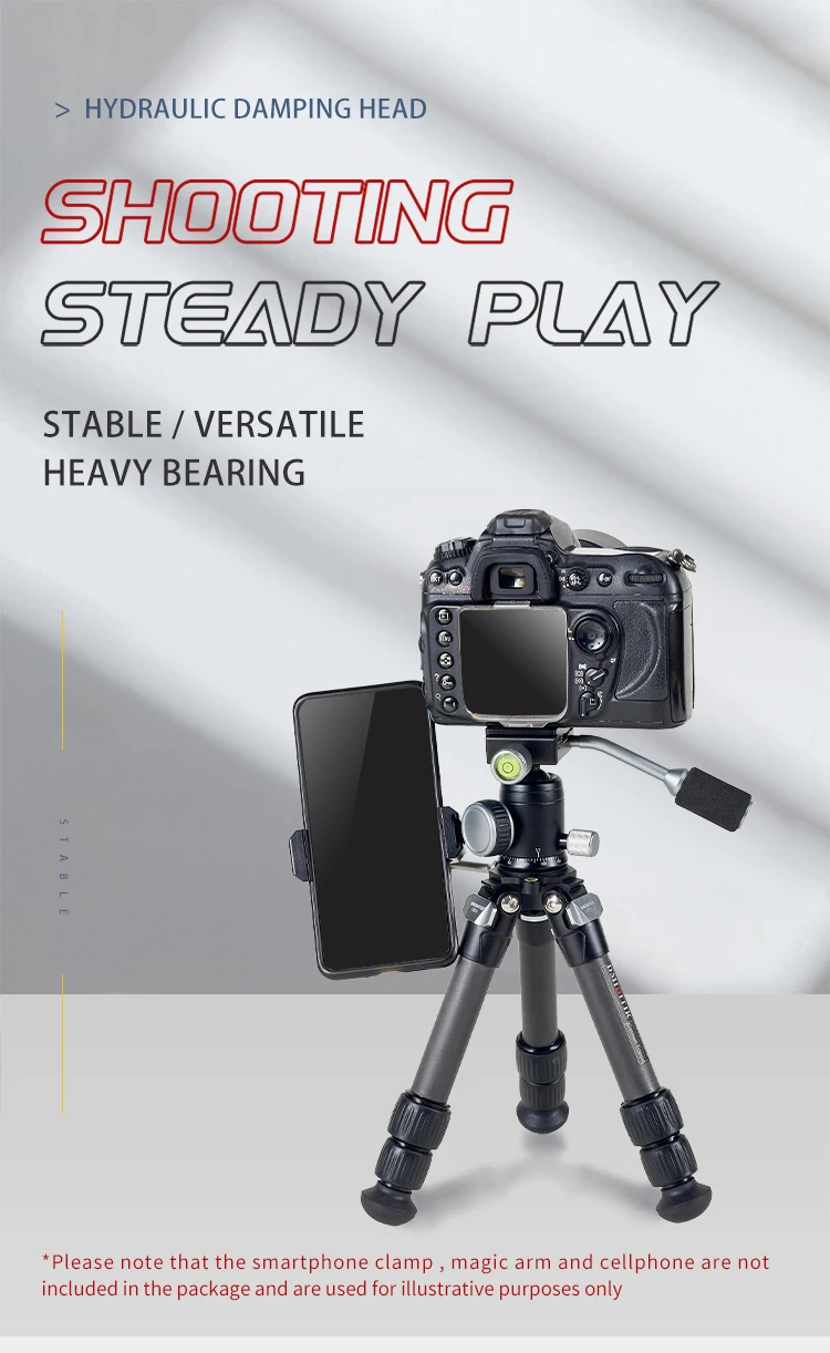 Dmiditir Lightweight Carbon Fiber Mini Tripod 360° Pan & Foldable for Video Camera Webcam-GT21C+Q10 Hunting & Camera Accessories