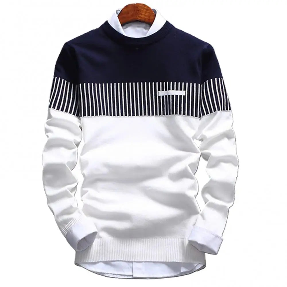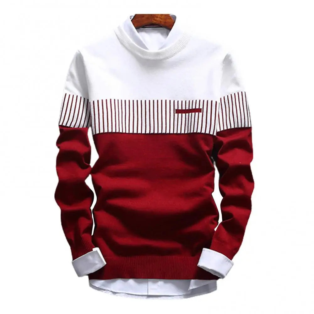 Fashion Men striped Sweater pullover Color Block Patchwork O Neck Long Sleeve Knitted Sweater Top Blouse For Warm Men's Clothing