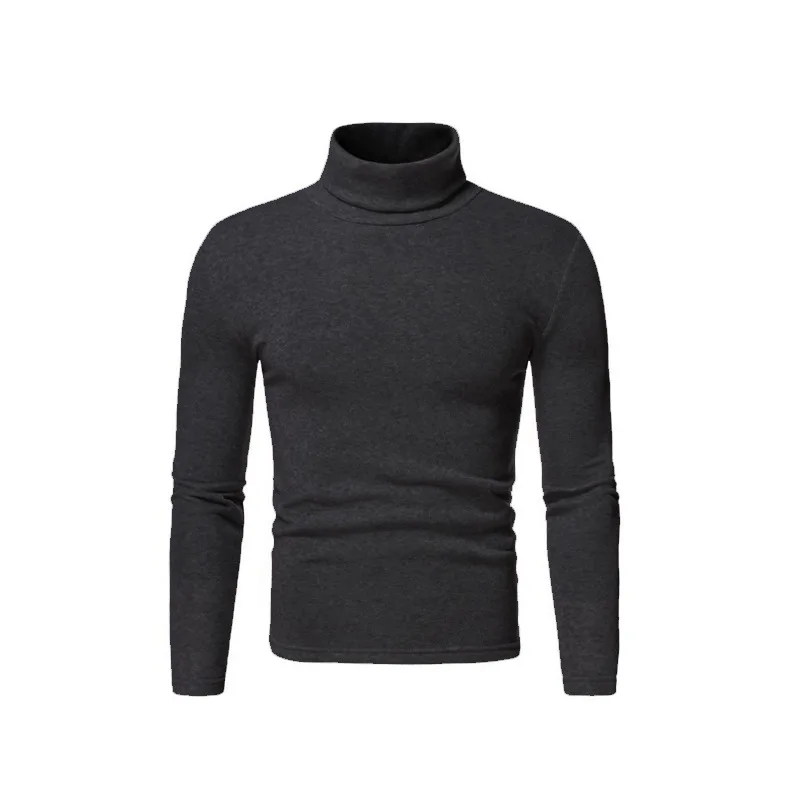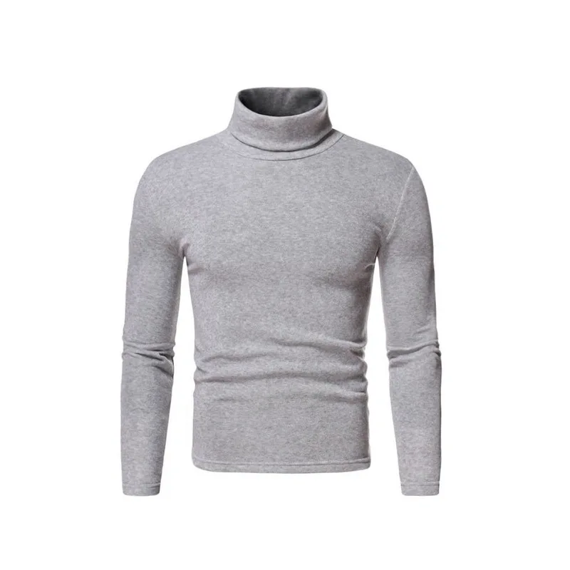 Fashion Men's Casual Slim Fit Basic Turtleneck High Collar Pullover Male Autumn Spring Thin Tops Basic Bottoming Plain T-shirt