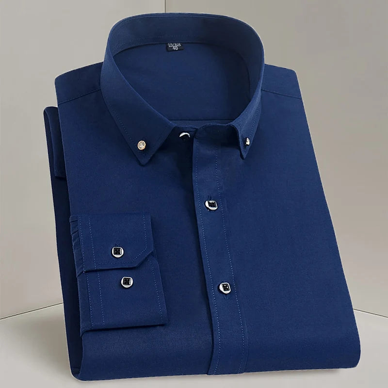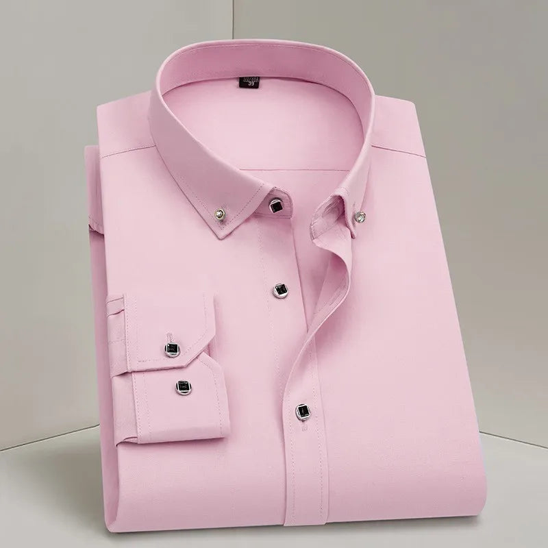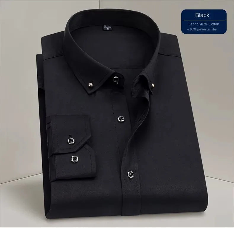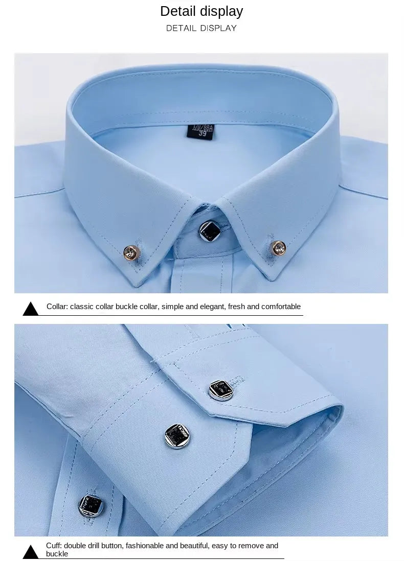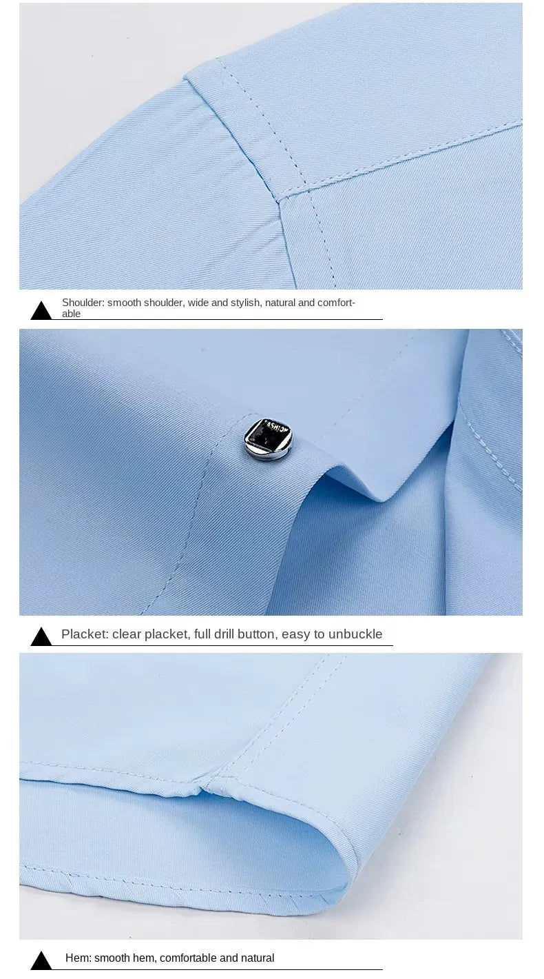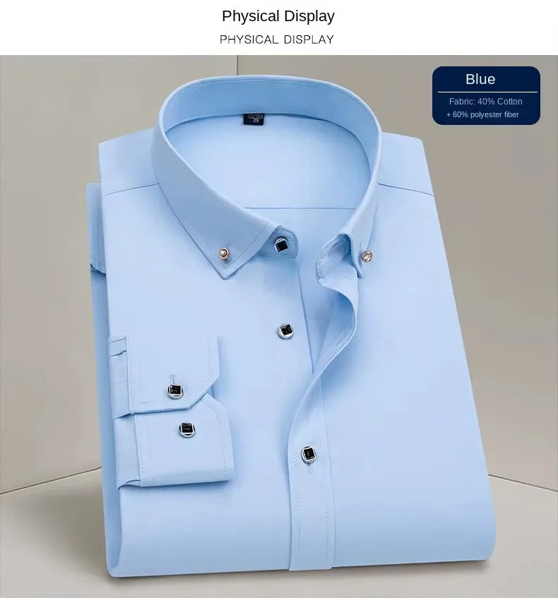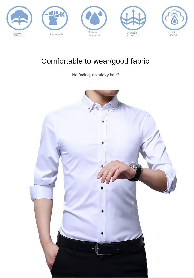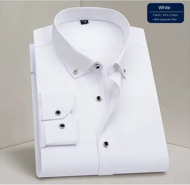 Hot Sale Men's Business Dress Shirt Formal Fashion Thin Classic Basic Diamond Button Long Sleeve Social White Shirt Men Clothing