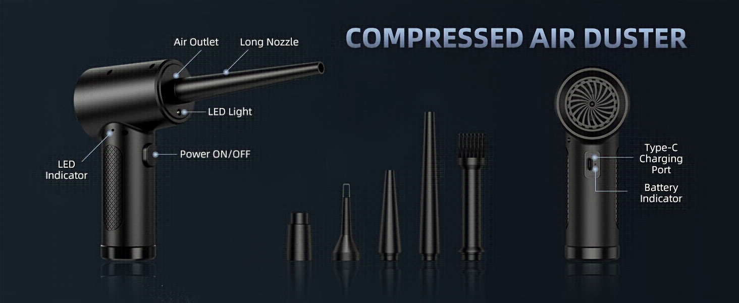 Rechargeable Cordless Air Blower for Easy Cleaning of Electronics and Home Surfaces