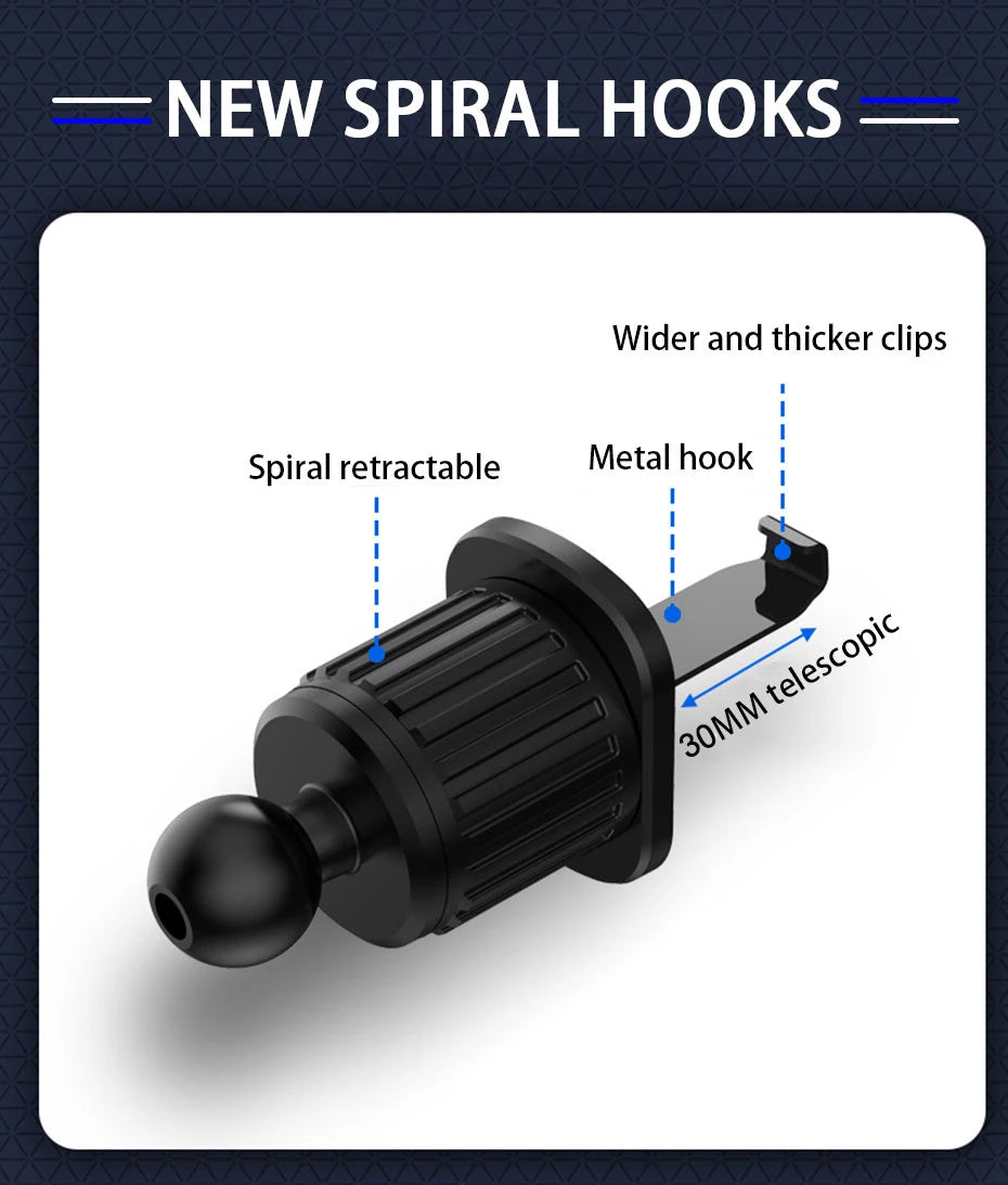 SEAMETAL Air Vent Clip for Phone Holder Universal 17mm Joint 360-Degree Free Adjustment Phone Holder Joint Stable Metal Hook