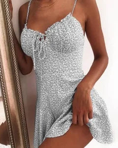 Summer Women New Sling Dresses Fashion Spaghetti Strap Flower Dress Tie Front Slim Dress Miniskirt Sexy Dress