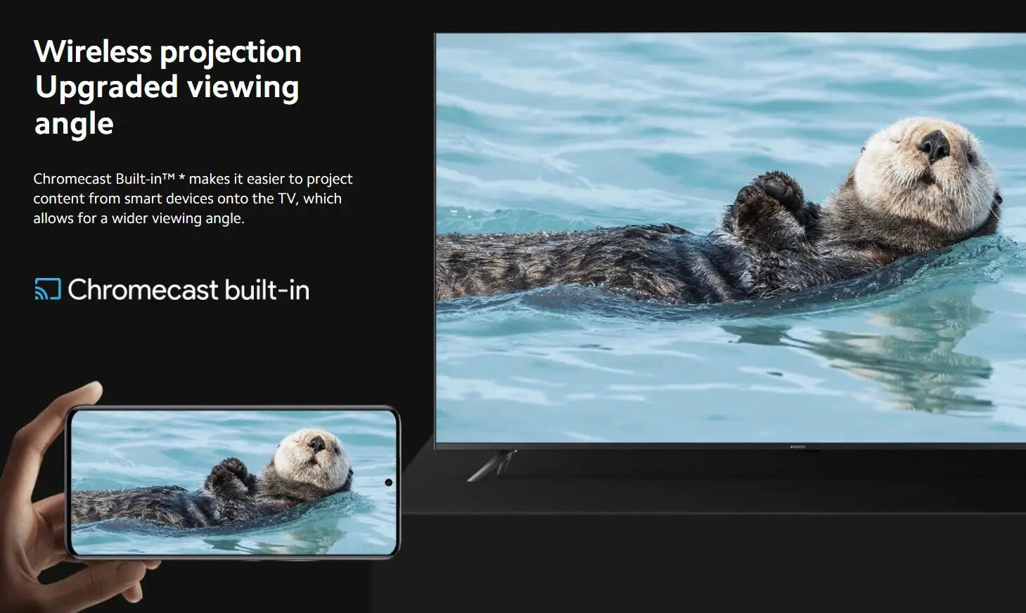 Chromecast Built-in™ * makes it easier to project content from smart devices onto the TV, which allows for a wider viewing angle.