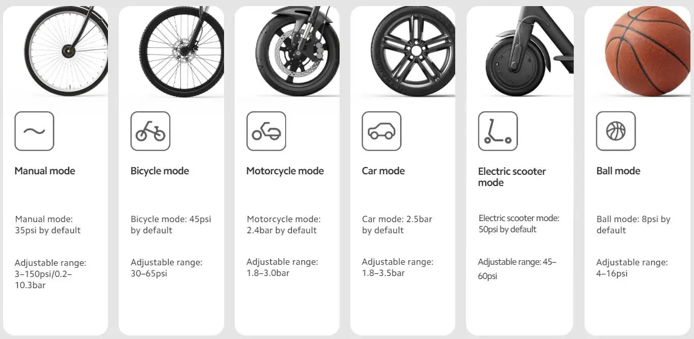 Switch six modes in one button and set default air pressure range to avoid over-inflation. The manual mode can remember pressure values. Set it once, and say goodbye to cumbersome settings.