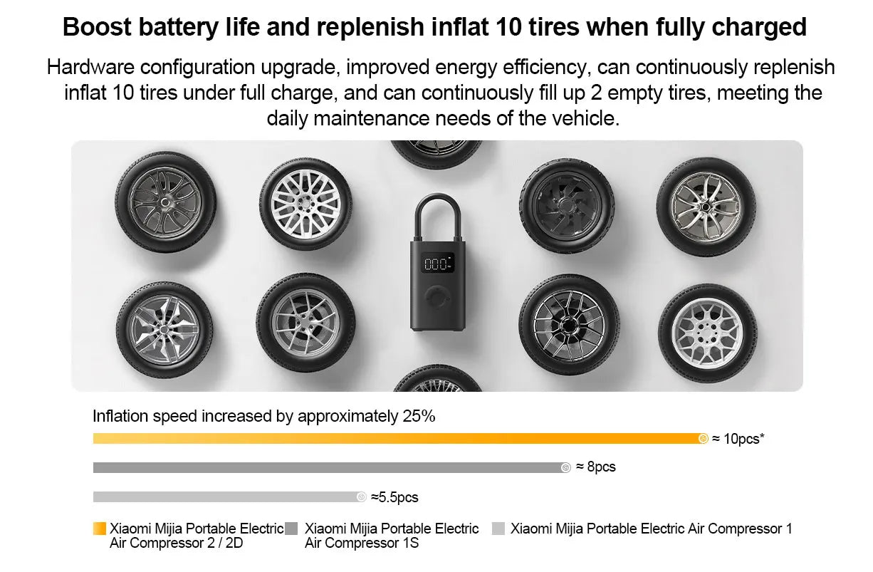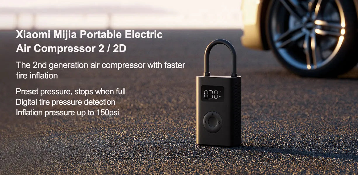 Xiaomi Mijia Portable Electric Air Compressor 2/2D, Electric Scooter Air Pump, Smart Digital Tire Pressure Detection Inflator