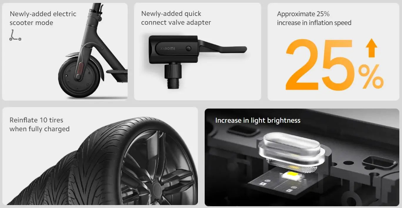 Compared with Xiaomi Portable Electric Air Compressor 1S, details are optimized, internal structure redesign, with an approximately 25% faster inflation speed, a significant step forward.